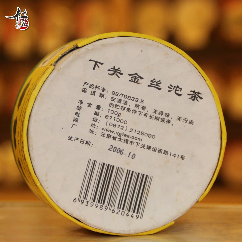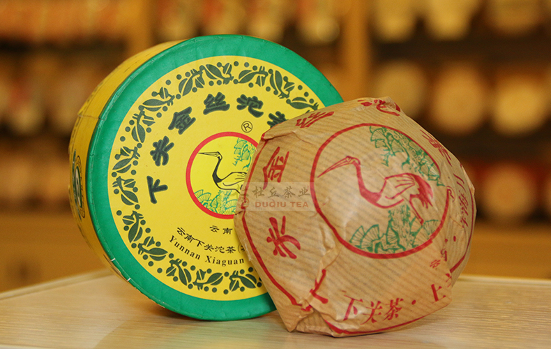 下关金丝沱,自2004年3月份面世以来,以其茶底幼嫩,口感清爽,香气张扬,生津好甜度高,深受广大茶友推崇和喜爱。特别是04年旧包装金丝沱,其外盒松鹤商标的鹤眼睛为红色,俗称红眼睛金丝沱。从2004年8月份金丝沱外包装更改后,红眼睛金丝沱已不再生产,因其存量少,品质好,已成为不可多得的一个好茶品。