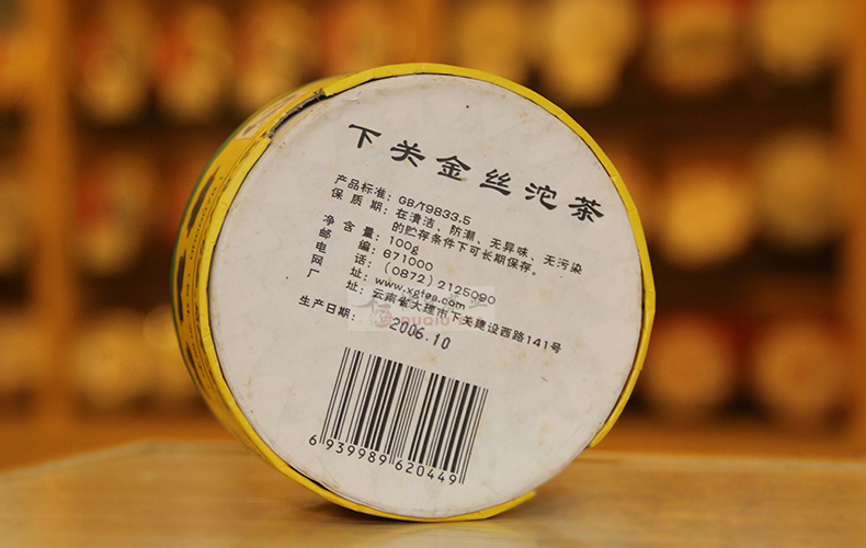 云南 普洱茶 下关 2006年 金丝沱 盒装 生茶 沱茶 100克/沱——包装正面