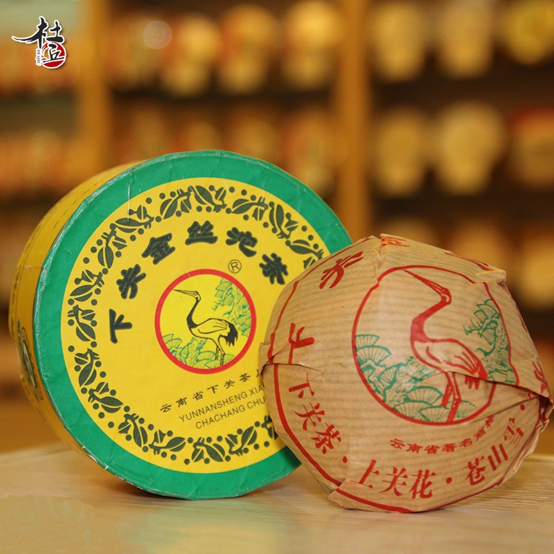 下关金丝沱,自2004年3月份面世以来,以其茶底幼嫩,口感清爽,香气张扬,生津好甜度高,深受广大茶友推崇和喜爱。特别是04年旧包装金丝沱,其外盒松鹤商标的鹤眼睛为红色,俗称红眼睛金丝沱。从2004年8月份金丝沱外包装更改后,红眼睛金丝沱已不再生产,因其存量少,品质好,已成为不可多得的一个好茶品。