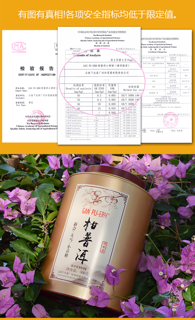 产品配料:云南勐海大树乔木普洱茶 +新会天马柑